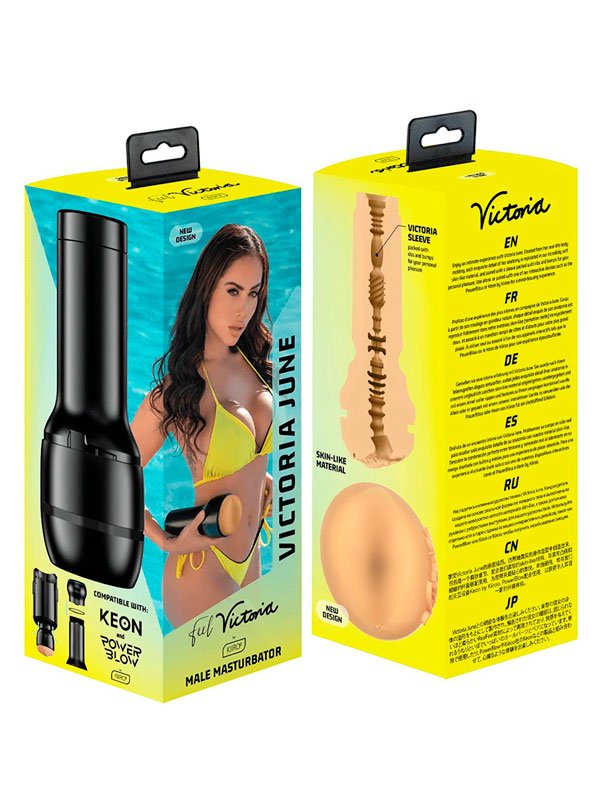 Это реалистичный мастурбатор Kiiroo Feel Victoria длиной 22 см, созданный по слепку взрослой актрисы. Он повторяет форму и текстуру человеческого тела, чтобы обеспечить плотное и разнообразное ощущение при мастурбации. Корпус сделан из пластика, рукав — из материала Superskin, похожего на настоящую кожу.