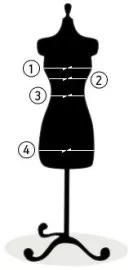 Обхват талии измеряется строго горизонтально по естественной линии талии.